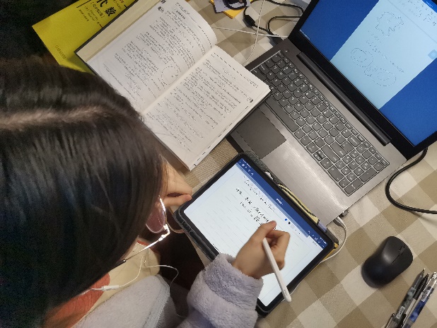 一周要上三次数学专业的核心课程,外加两次研究生讨论班,隔着屏幕、透过音频,同学们不难感受到李老师一脸倦容和略显沙哑的声音。在距离学校一公里外的温馨小家,李忠华老师的爱人、同在教工党支部的孙娟娟老师,一边为在线授课做着各种准备,一边还兼顾上小学的孩子也要上网课。一家子打开视频,教学、生活都在网上了。